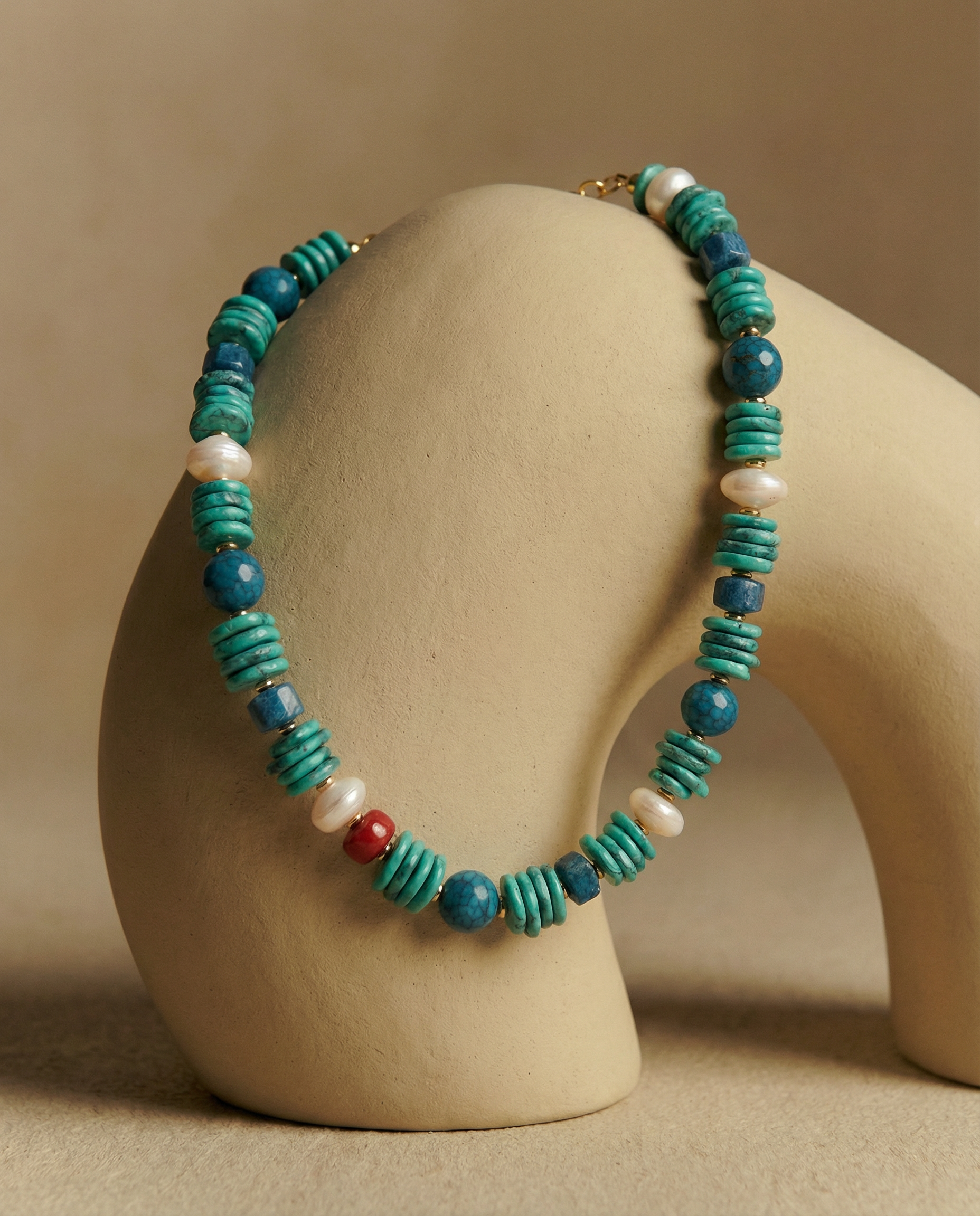 To keep it looking its best, avoid water, perfume, lotions, and harsh cleaners. Store pieces separately in a soft pouch, and wipe gently with a dry, soft cloth after wearing. Natural stones may vary slightly — that’s part of their charm.